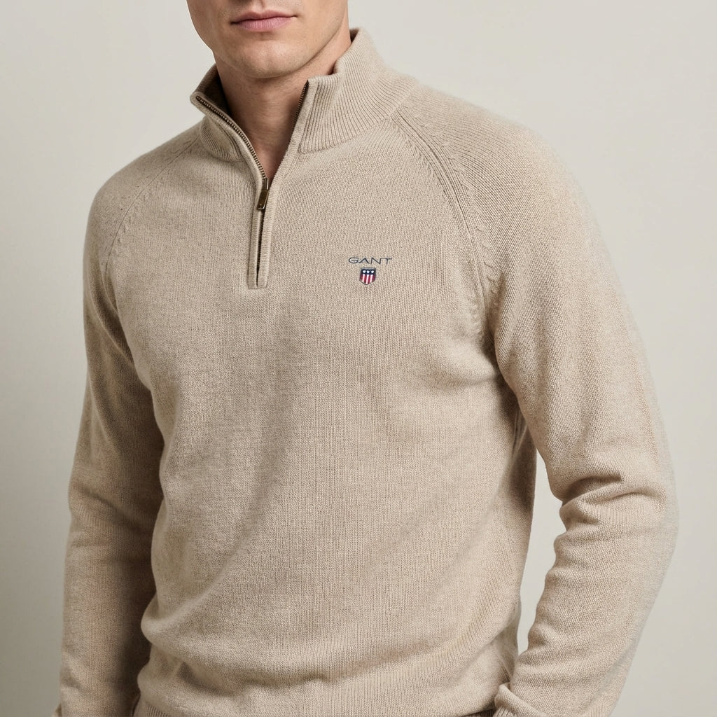 Oplev enestående elegance med GANT® Premium Zip Sweater. Nøje fremstillet af en førsteklasses blanding af høj-kvalitets bomuld og holdbare syntetiske fibre, sikrer dette alsidige stykke både luksuriøs komfort og langvarig holdbarhed. Dens klassiske lynlåsd-design og diskrete GANT-logo udstråler tidløs appel, hvilket gør den til det perfekte grundlag til alle lejligheder, fra afslappede ture til smart-casual arrangementer. Invester i kvalitet, der både ser og føles exceptionel.