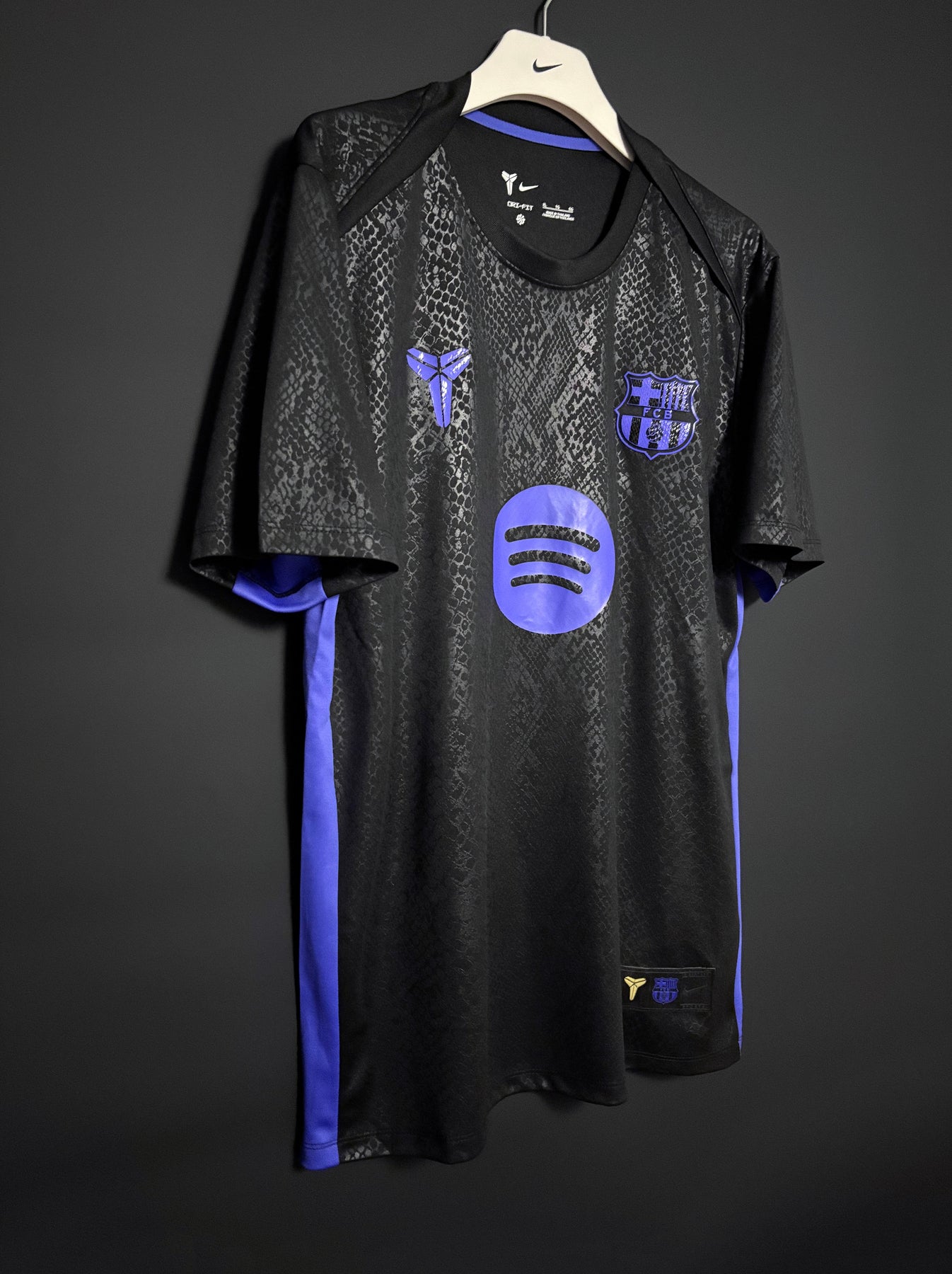 FC Barcelonas uppvärmningströja har en mörk design med ett subtilt mönster och lila detaljer som ger en modern och kraftfull look. Den stilrena färgkombinationen gör tröjan både sportig och elegant, perfekt för uppvärmning eller vardagsbruk. Tröjan är tillverkad i lätt och andningsbart material som ger optimal komfort före match och under hela dagen.