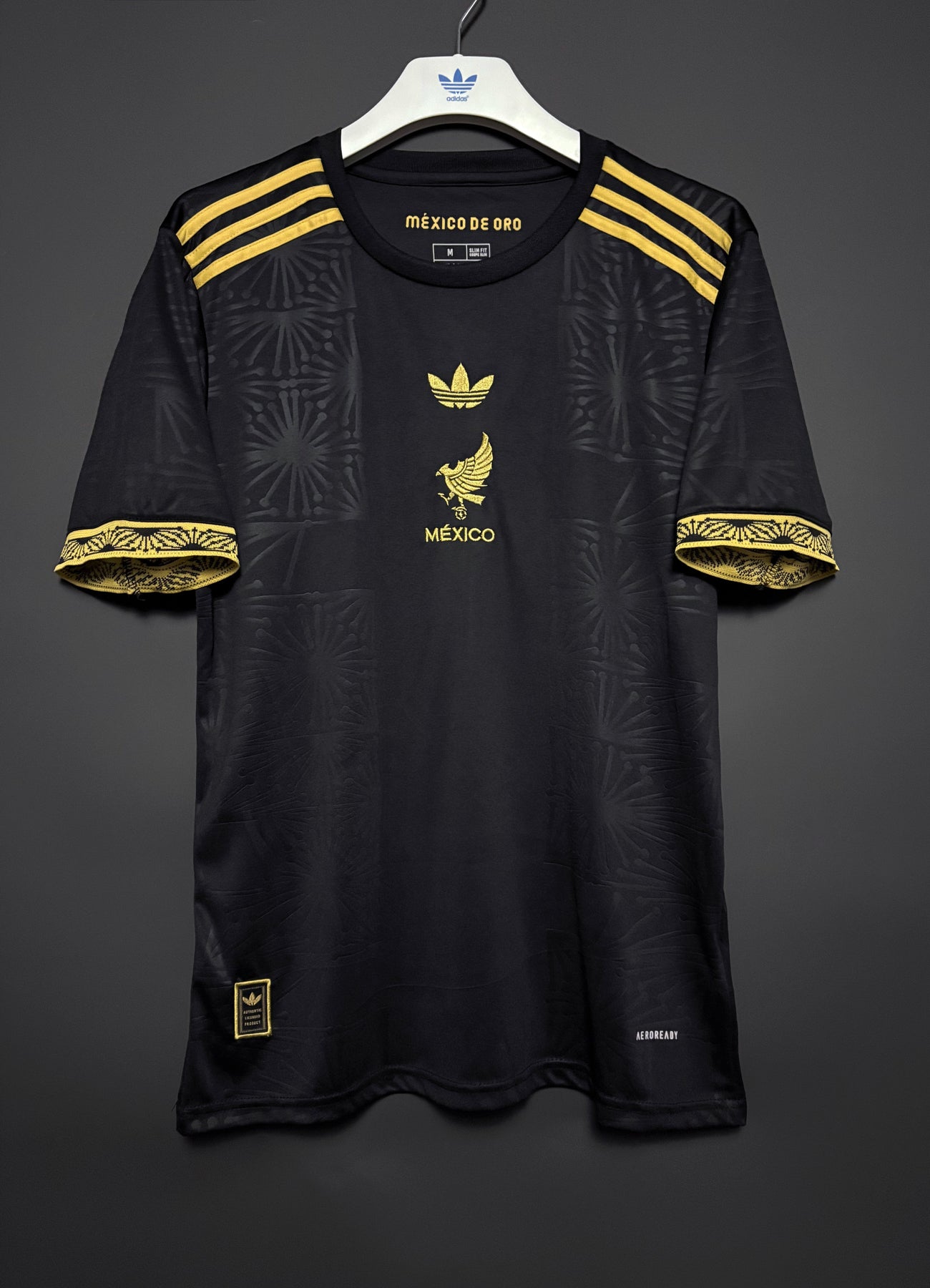Mexikos specialutgåva bortatröja har en djup röd bas med exklusiva gulddetaljer som ger en elegant och kraftfull look. De diskreta mönstren i tyget och de gyllene ränderna på axlarna skapar en stilren design inspirerad av landets stolta fotbollstradition. Tröjan är tillverkad i lätt och andningsbart funktionsmaterial för maximal komfort både på planen och till vardags.