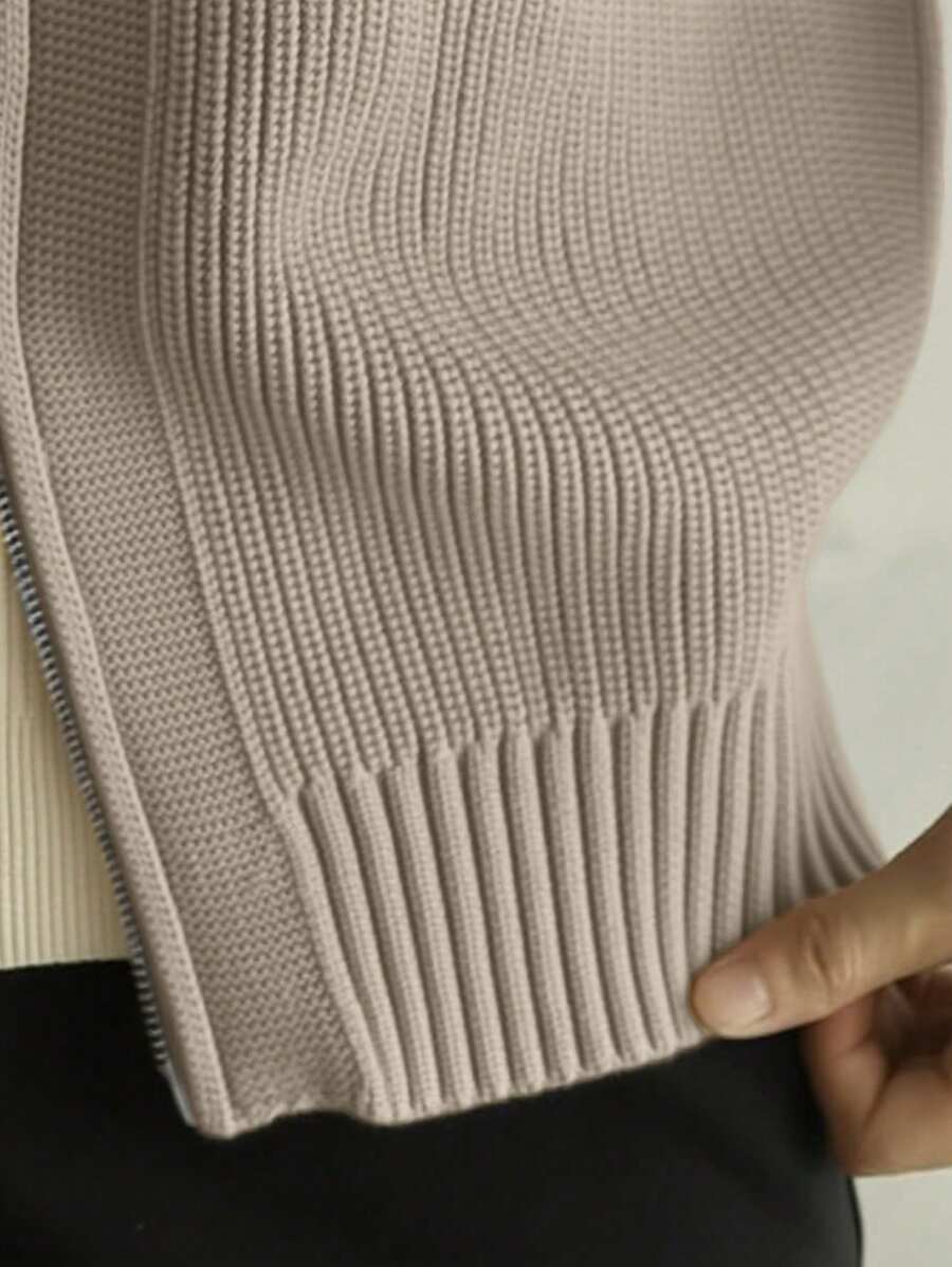 Lång herrcardigan med dragkedja och hög krage