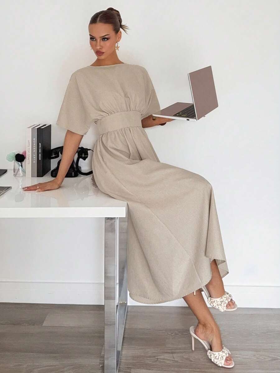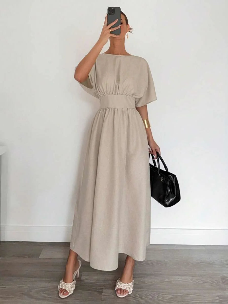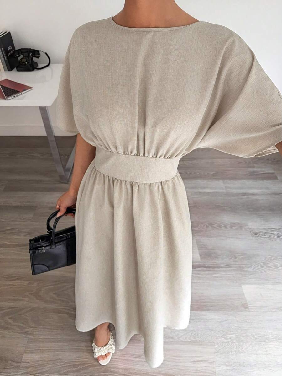Midjeband Klänning med Fladdermusärm