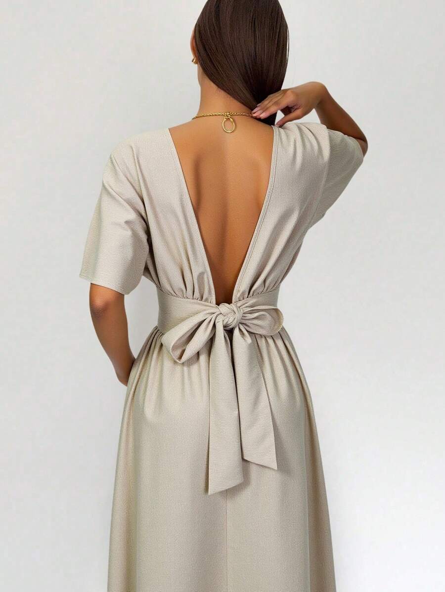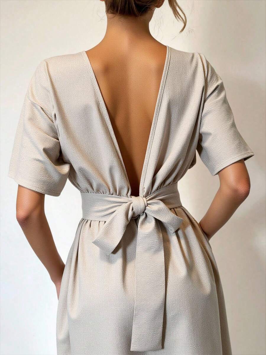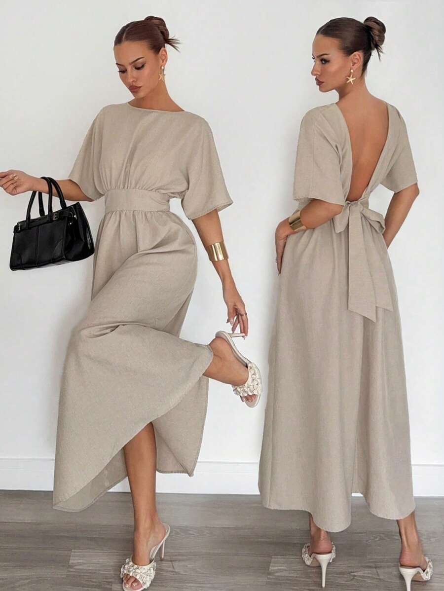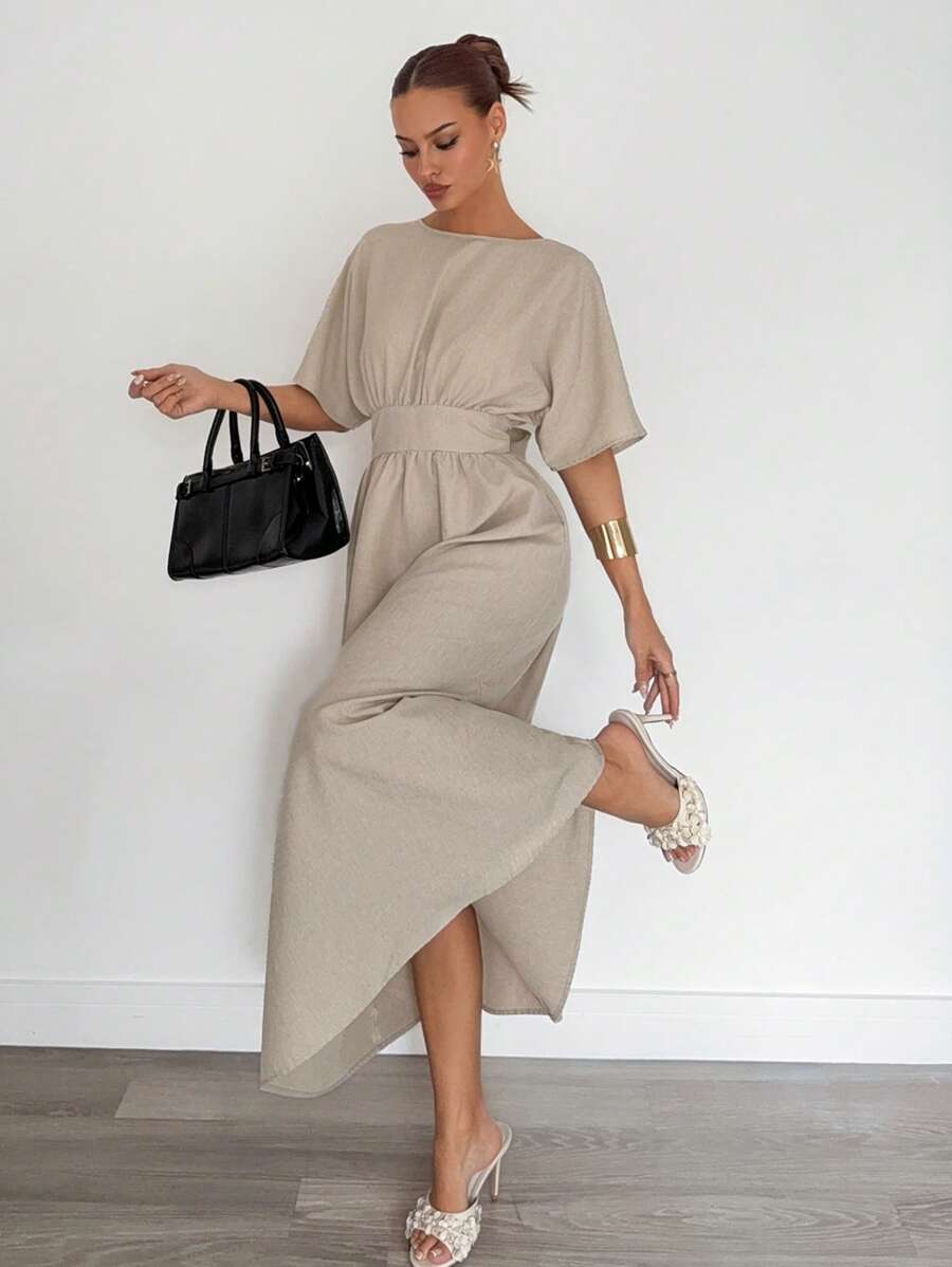 Midjeband Klänning med Fladdermusärm