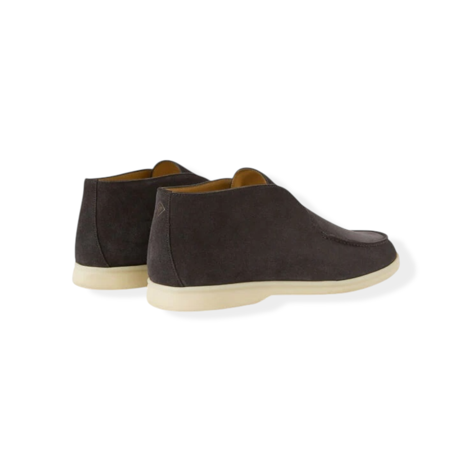 Klassiska loafers i mocka med mellanhögt skaft och vattenavvisande, smutsresistent behandling. Till största delen handgjorda – denna mjuka och lätta modell erbjuder maximal komfort tack vare sin välgenomtänkta konstruktion och flexibla gummisulor. På hälen finns ett särskilt område där du kan skriva ditt namn – en omtyckt tradition bland seglingsentusiaster. Perfekta för somrar till sjöss eller på stranden. Matcha dina Loro Piana-skor med en t-shirt i baby cashmere eller en Wish-piké för en elegant och avslappnad sommarlook.